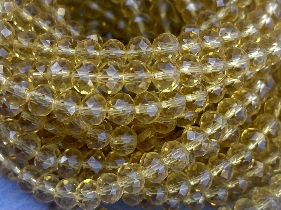Кришталеві намистини, грановані. Розмір: 6*5мм, отвір: 1мм. Форма: рондель, сфера. У нитці: 90+-3шт. Ціна за 1 нитку.