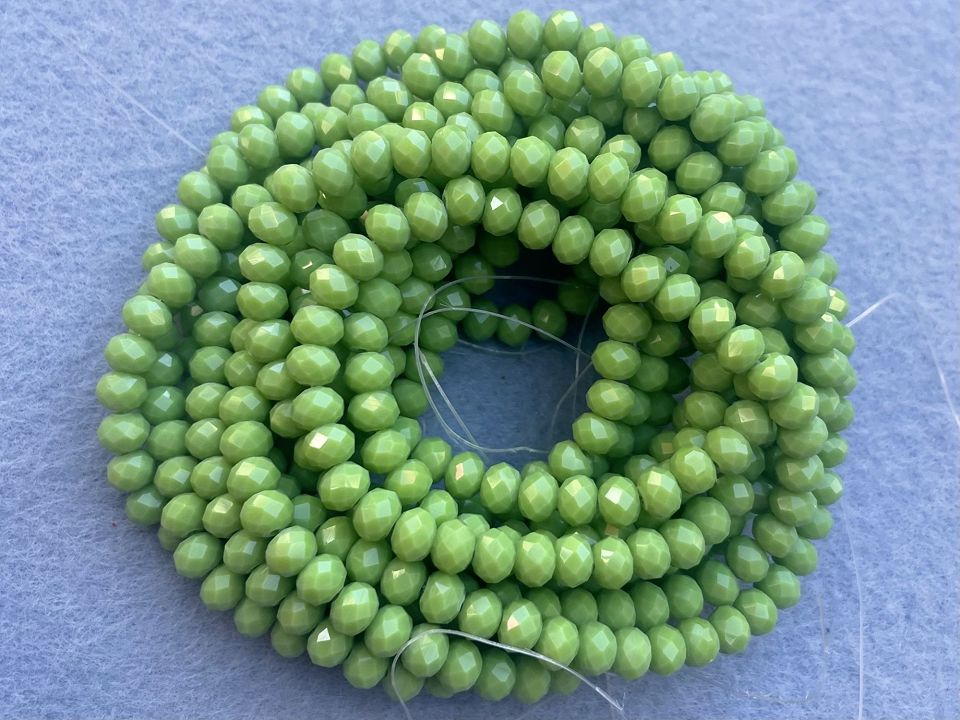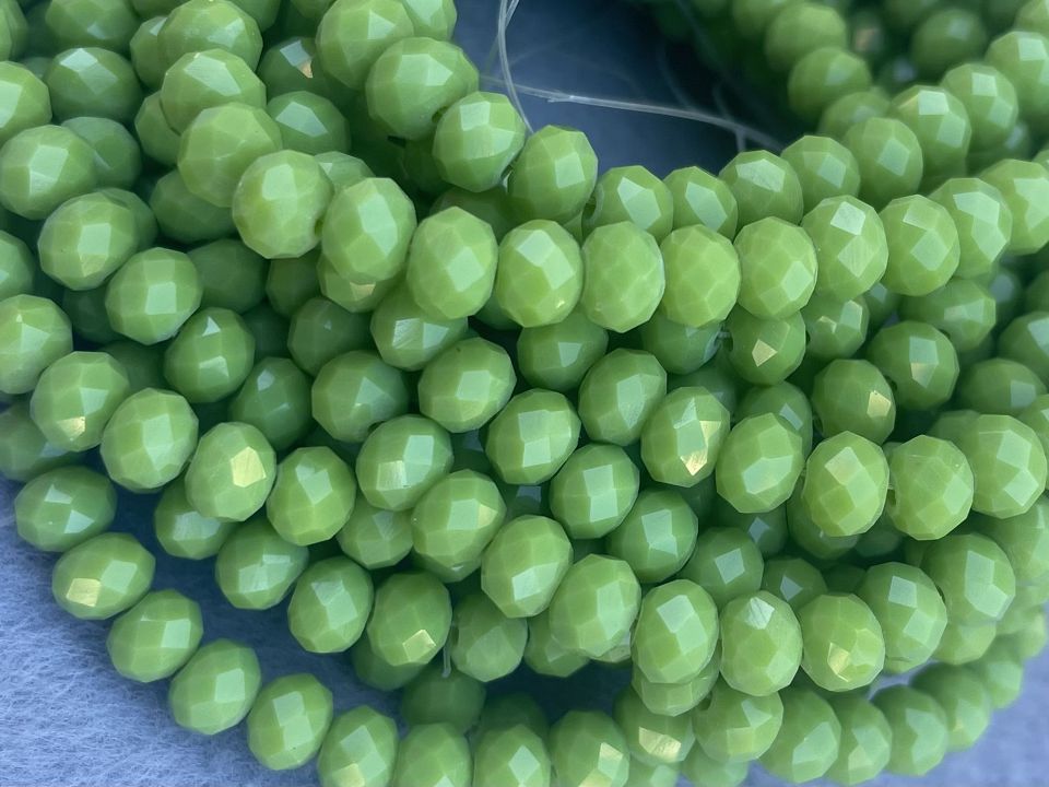 Кришталеві намистини, грановані. Розмір: 6*5мм, отвір: 1мм. Форма: рондель, сфера. У нитці: 90+-3шт. Ціна за 10 ниток.