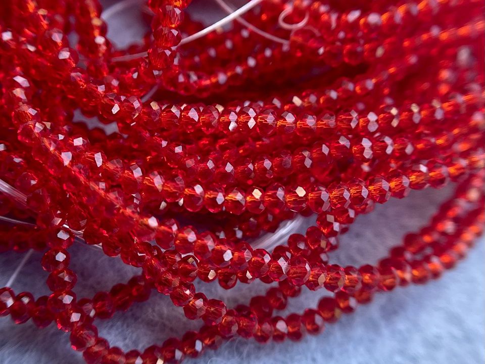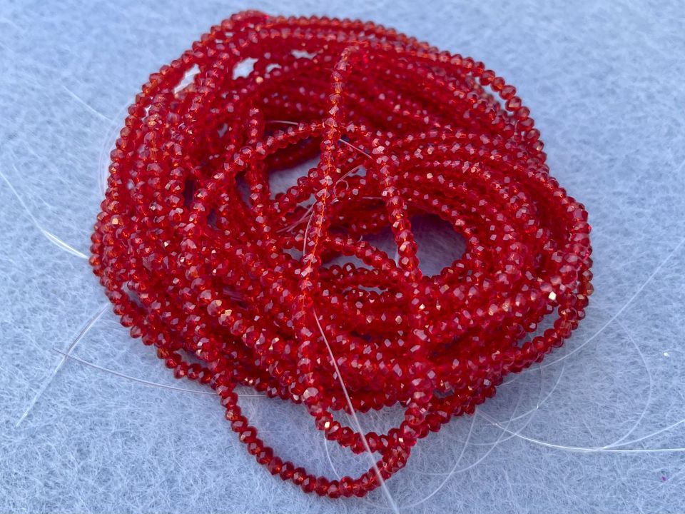 Кришталеві намистини, грановані. Розмір: 1*2мм, отвір: 0,7 мм. Форма: рондель, сфера. У нитці: 195+-3шт. Ціна за 1 нитку.
