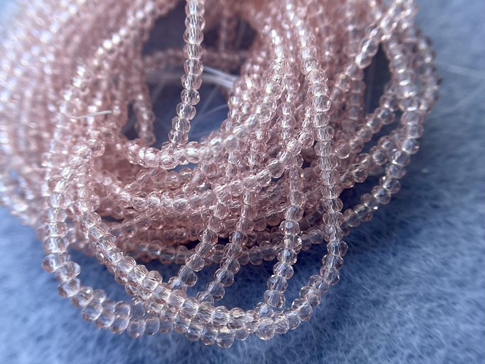 Кришталеві намистини, грановані. Розмір: 1*2мм, отвір: 0,7 мм. Форма: рондель, сфера. У нитці: 195+-3шт. Ціна за 1 нитку.