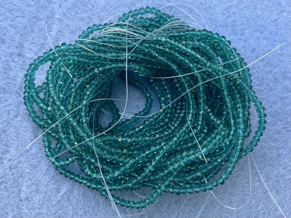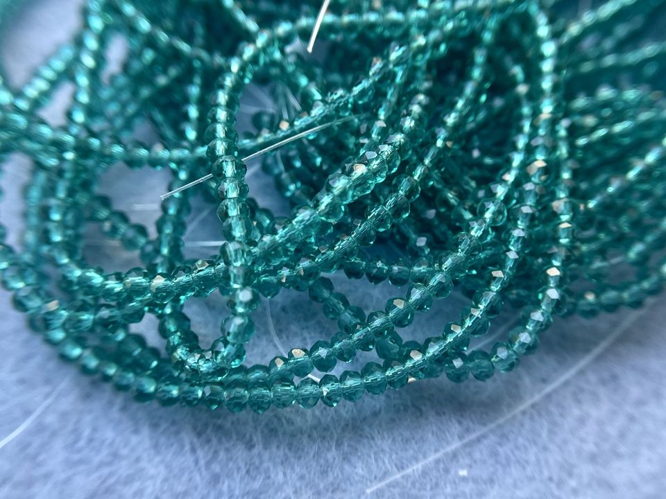 Кришталеві намистини, грановані. Розмір: 1*2мм, отвір: 0,7 мм. Форма: рондель, сфера. У нитці: 195+-3шт. Ціна за 1 нитку.