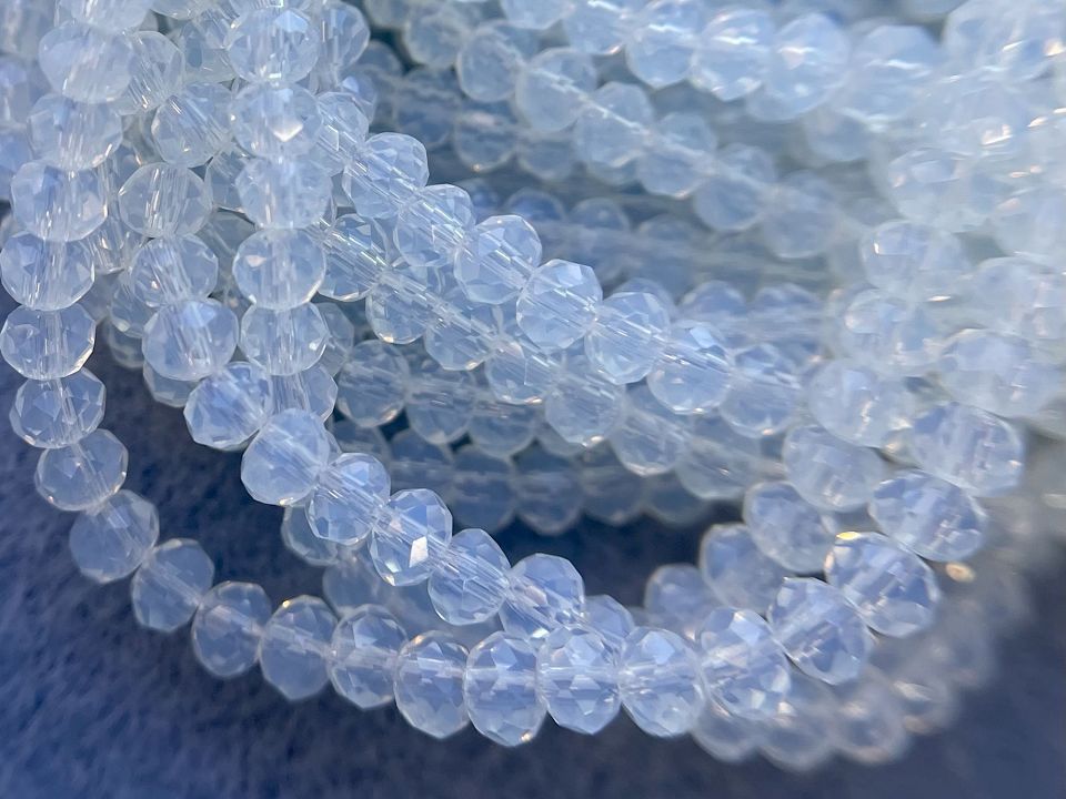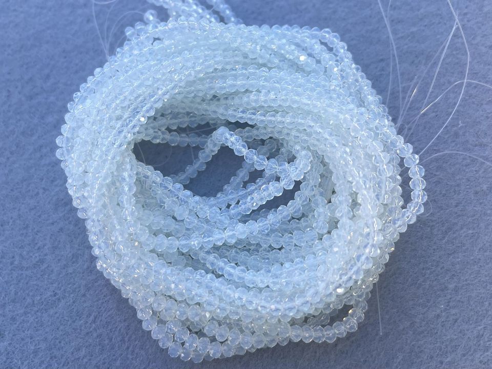 Кришталеві намистини, грановані. Розмір: 3*3,5мм, отвір: 1 мм. Форма: рондель, сфера. У нитці: 145+-5шт. Ціна за 1 нитку. Колір-місячний камінь.