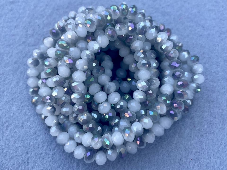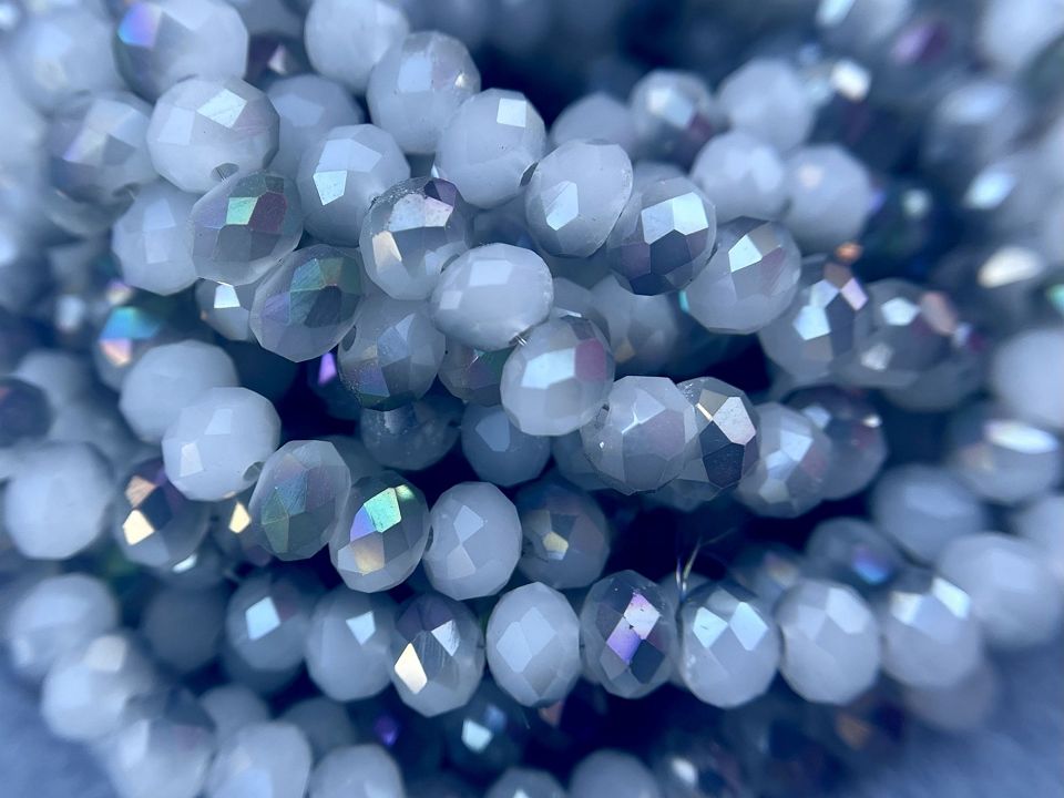 Кришталеві намистини, грановані. Розмір: 6*5мм, отвір: 1мм. Форма: рондель, сфера. У нитці: 90+-3шт. Ціна за 10 ниток.