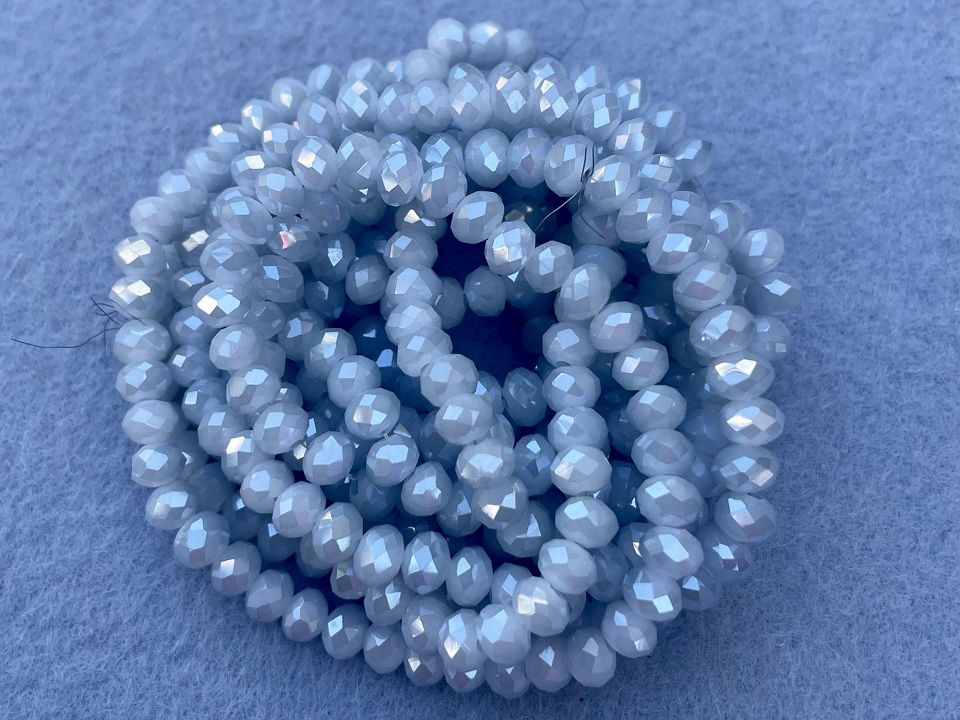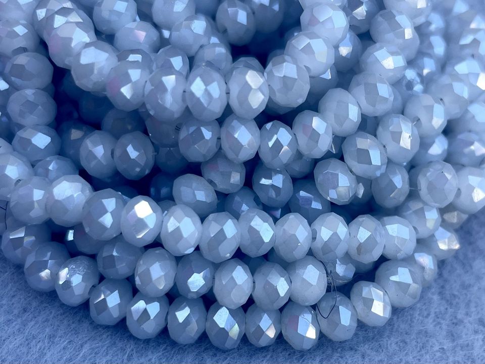 Кришталеві намистини, грановані. Розмір: 6*5мм, отвір: 1мм. Форма: рондель, сфера. У нитці: 90+-3шт. Ціна за 10 ниток.