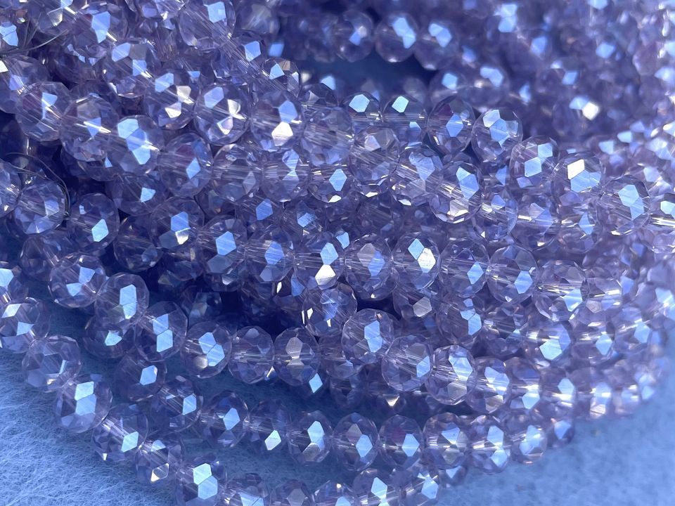 Кришталеві намистини, грановані. Розмір: 6*5мм, отвір: 1мм. Форма: рондель, сфера. У нитці: 90+-3шт. Ціна за 10 ниток.