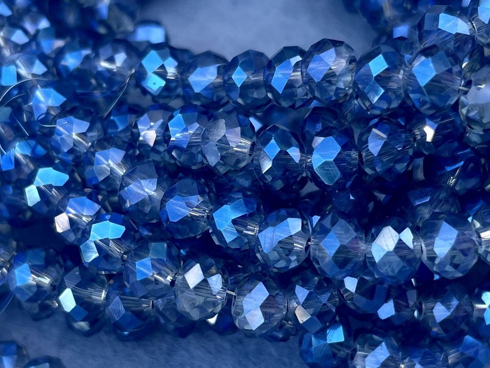 Кришталеві намистини, грановані. Розмір: 6*5мм, отвір: 1мм. Форма: рондель, сфера. У нитці: 90+-3шт. Ціна за 10 ниток.