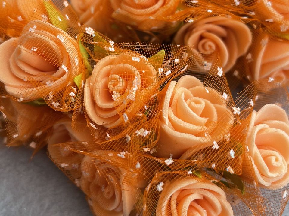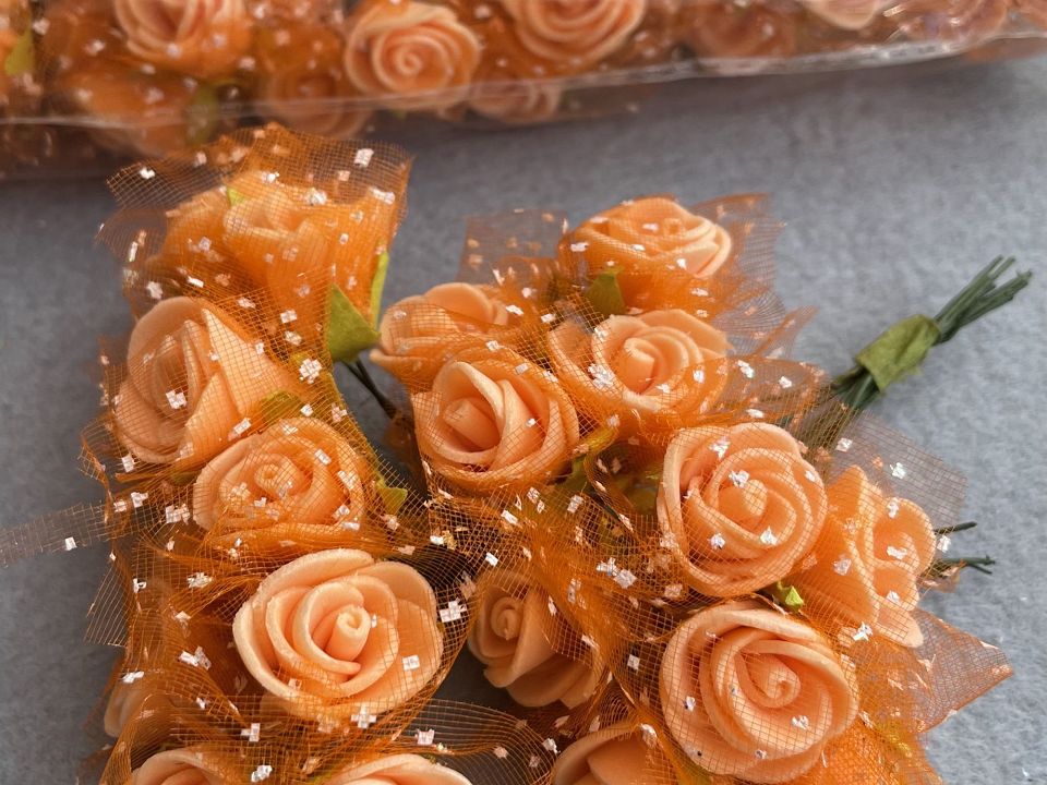 Троянди з фоамірана Ø2-2,5см з фатином на дротяної ніжці.