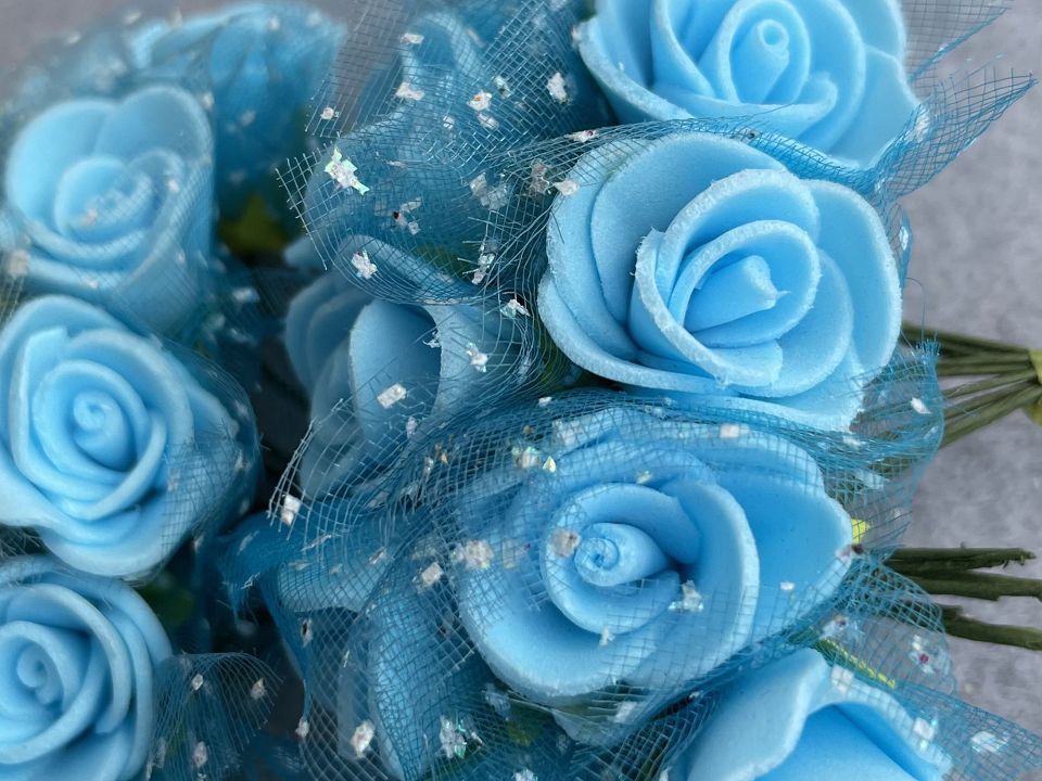 Троянди з фоамірана Ø2-2,5см з фатином на дротяної ніжці.