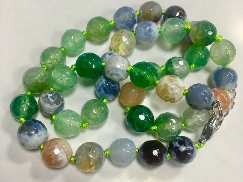 Агат гранований зелено-бежевий.Діаметр ~ 10мм; ~ 38 намистин з замочком!