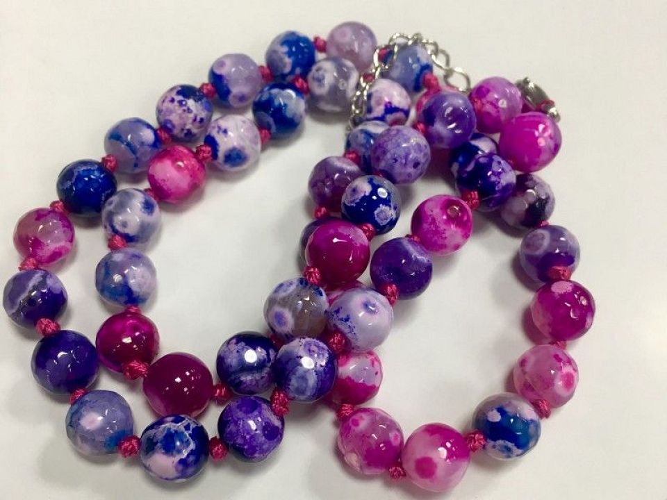 Агат гранований синьо-розовий.Діаметр ~ 8мм; ~ 45бусінок з замочком!