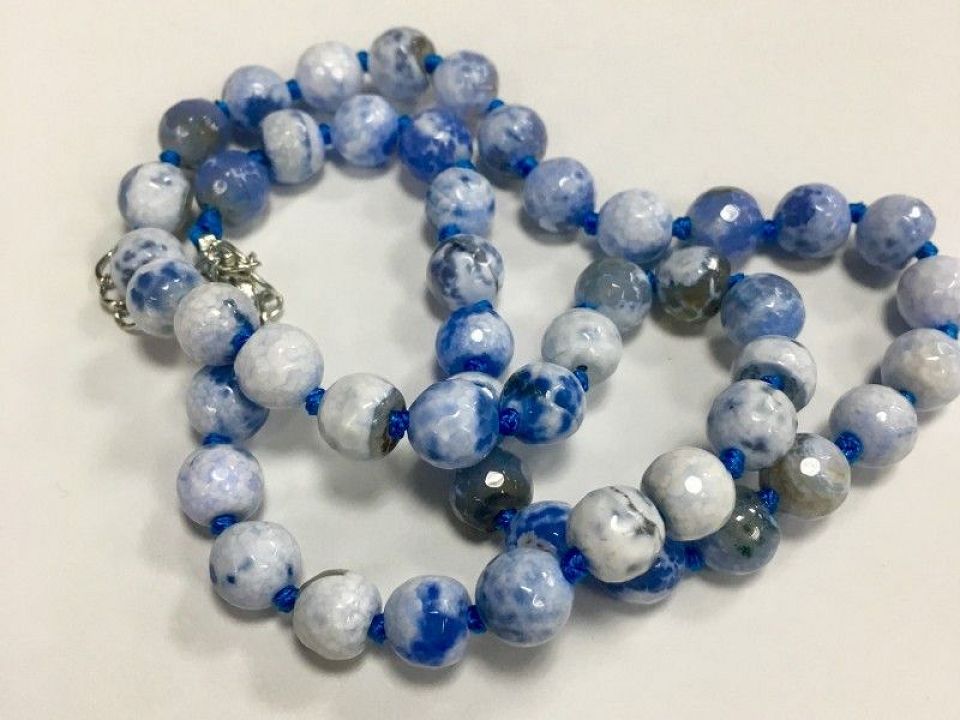Агат гранований біло-сіній.Діаметр ~ 8мм; ~ 45бусінок з замочком!