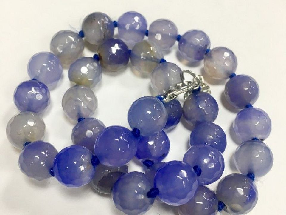Агат гранований прозоро-синій; діаметр-12 мм ~ 33 намистини з замочком!