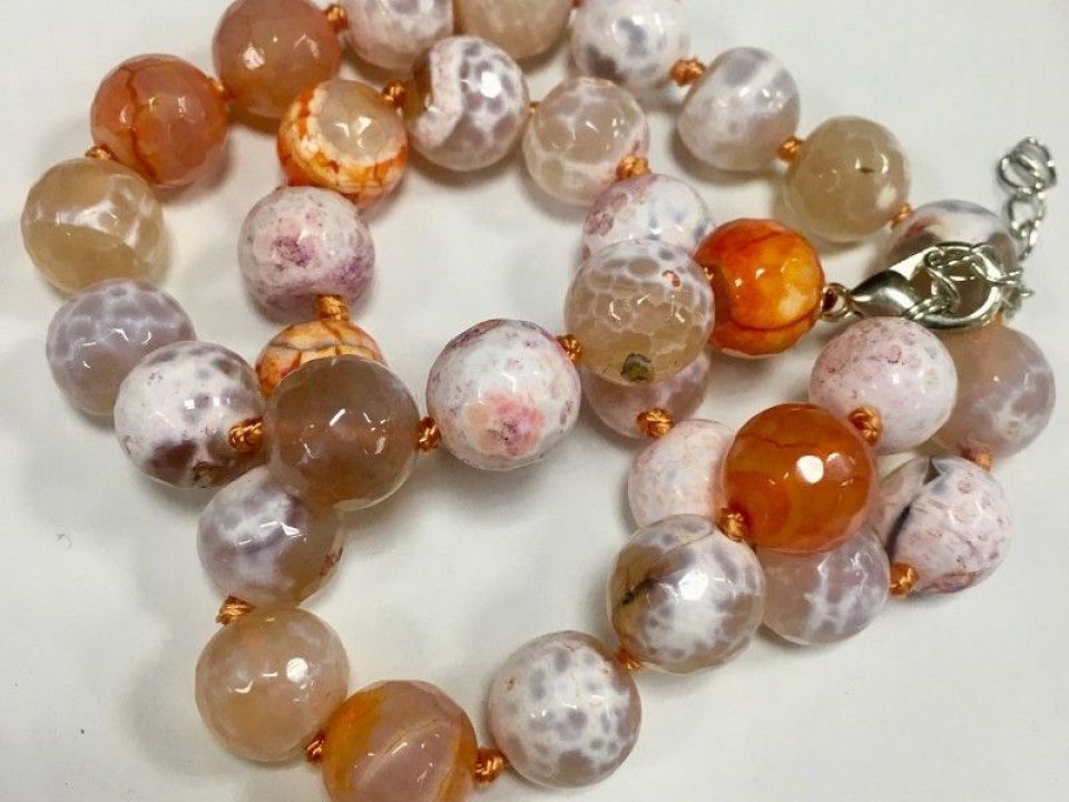 Агат гранований оранжево-білий: діаметр-12 мм ~ 33 намистини з замочком!