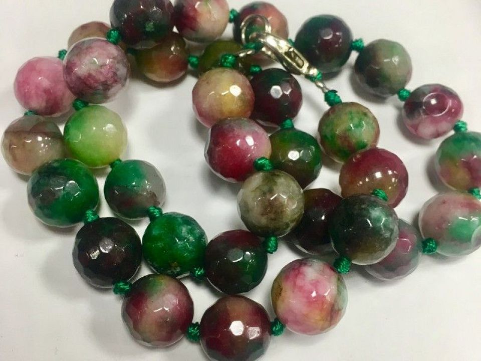 Агат гранований зелено-малиновий (під турмалін); діаметр-12 мм ~ 33 намистини з замочком!