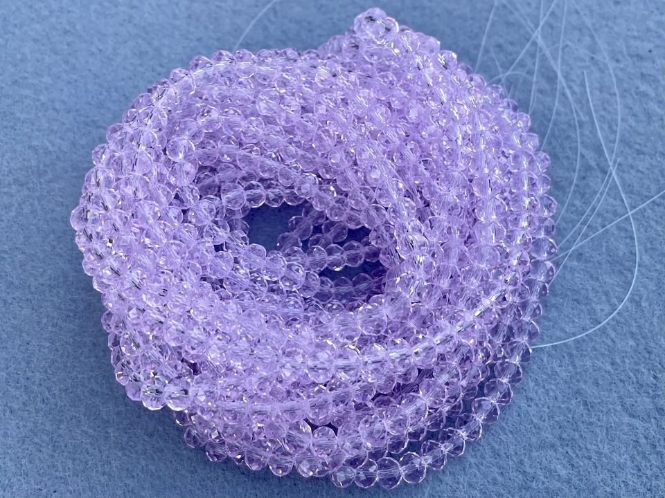 Кришталеві намистини, грановані. Розмір: 6*5мм, отвір: 1мм. Форма: рондель, сфера. У нитці: 90+-3шт. Ціна за 1 нитку.