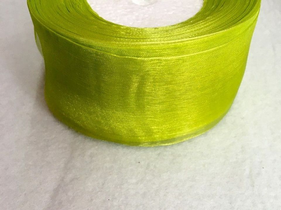 Стрічка з органзи, ширина-5 см. У мотке- 46 метрів. Використовуються при будь-яких видах декорування (при виготовленні сувенірів, ляльок, шпильок, гумок, обручів; при упаковці подарунків) .Ленти з органзи вдають із себе тонкі, трохи жорстким і напівпрозорі тканини смужки.