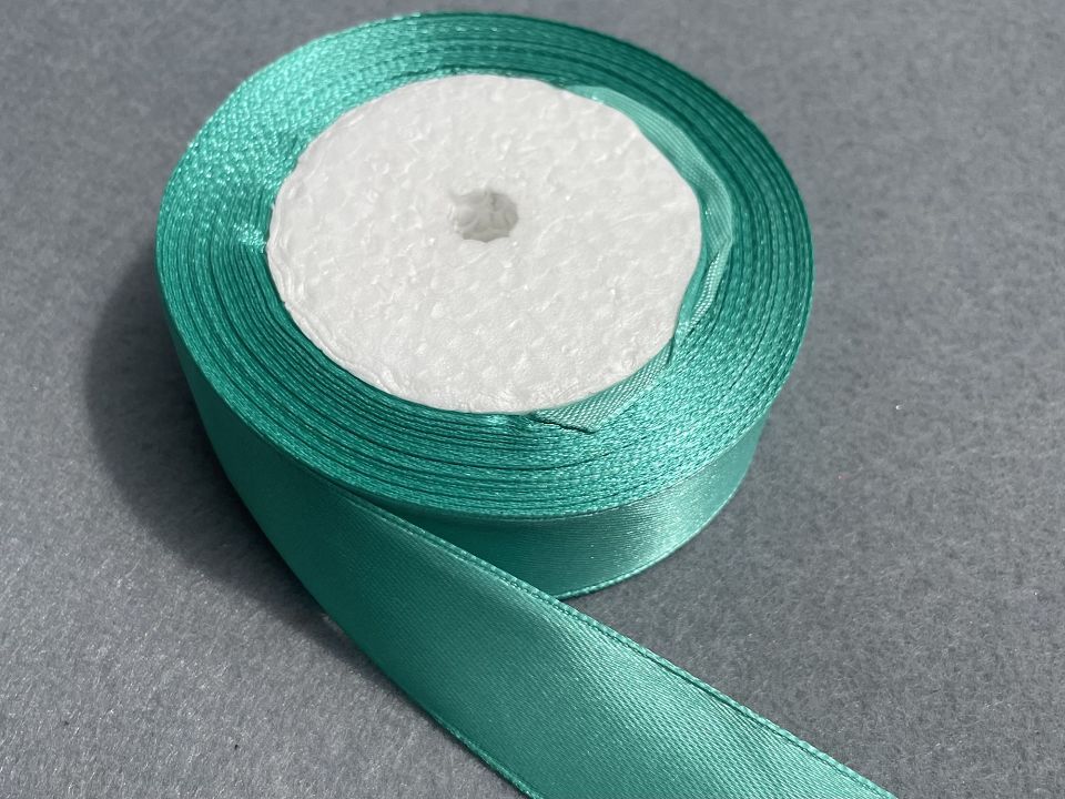 Стрічка атласна-ширина 2.5 см. У мотку ~23 метри. Колір-м'ятний. Застосовують для прикраси, оздоблення одягу, вишивання стрічками, плетіння стрічками тощо. Ціна вказана за 1 моток. Виробництво – Китай.