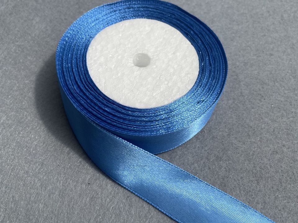 Стрічка атласна-ширина 2.5 см. У мотку ~23 метри. Колір-світло синій. Застосовують для прикраси, оздоблення одягу, вишивання стрічками, плетіння стрічками тощо. Ціна вказана за 1 моток. Виробництво – Китай.