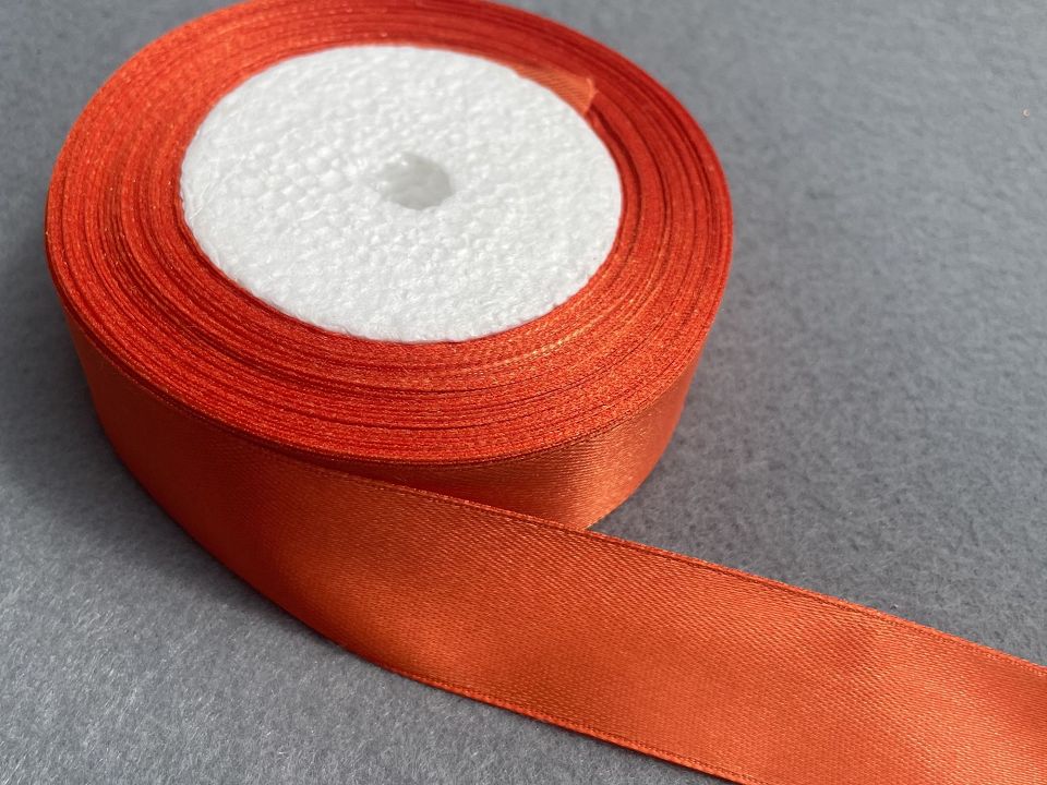 Стрічка атласна-ширина 2.5 см. У мотку ~23 метри. Колір-яскраво оранжевий. Застосовують для прикраси, оздоблення одягу, вишивання стрічками, плетіння стрічками тощо. Ціна вказана за 1 моток. Виробництво – Китай.