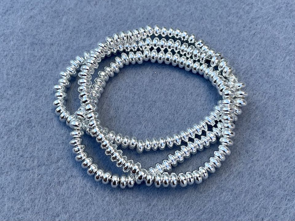 Гематит-натуральний, гладкий. Розмір намистини: 4*2 мм. Кількість намистин на нитці: 2010 (+-2шт). Отвір: 1мм. Колір – срібло. Ціна за нитку.