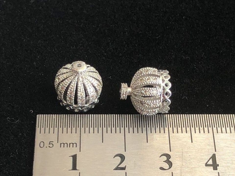 Ковпачки-корони інкрустовані кубічним цирконієм, для виготовлення пензликів, сережок-Оскар.Покритіе родій