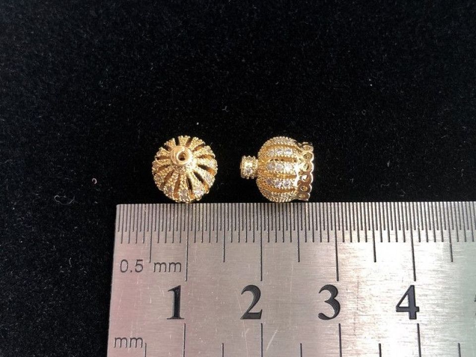 Ковпачки-корони інкрустовані кубічним цирконієм, для виготовлення пензликів, сережок-Оскар.Покритіе родій Розмір: висота-10мм, діаметр 8мм Колір-золото, ціна за 1 шт