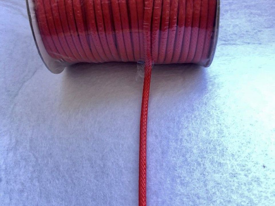 Шнур вощений з пропіткой.діаметр-3 мм, бабина-46 метров.Цвет-червоний