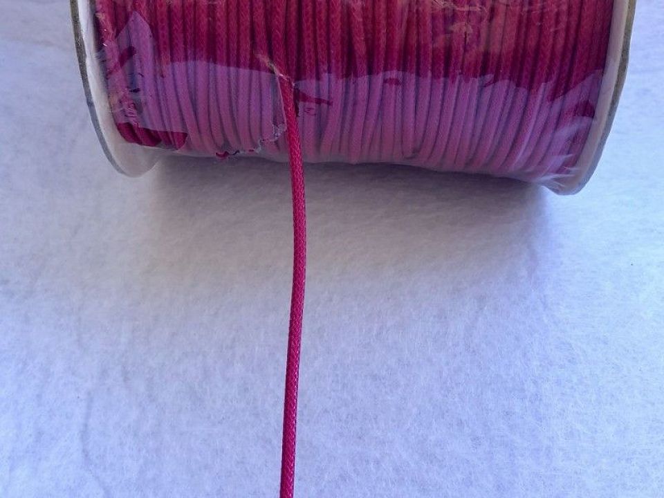 Шнур вощений з просоченням-діаметр -2 мм. Бабіна-95 метрів. Колір-малиновий