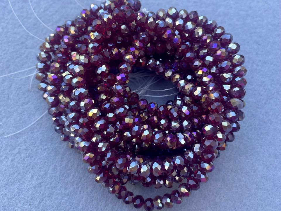 Кришталеві намистини, грановані. Розмір: 6*5мм, отвір: 1мм. Форма: рондель, сфера. У нитці: 90+-3шт. Ціна за 10 ниток.