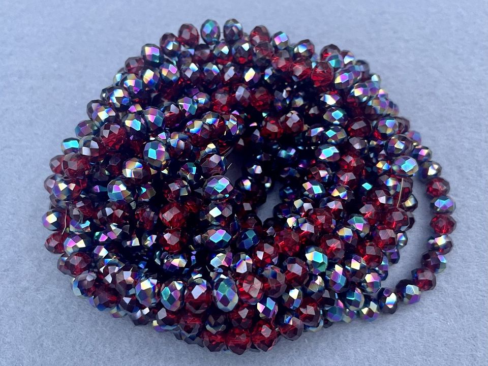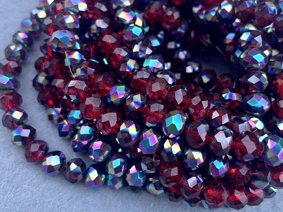 Кришталеві намистини, грановані. Розмір: 8*7мм, отвір: 1,5мм. Форма: рондель, сфера (еліпсоїд). У нитці: 70+-3шт. Ціна за 1 нитку.