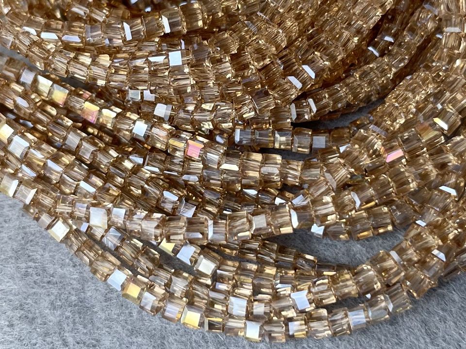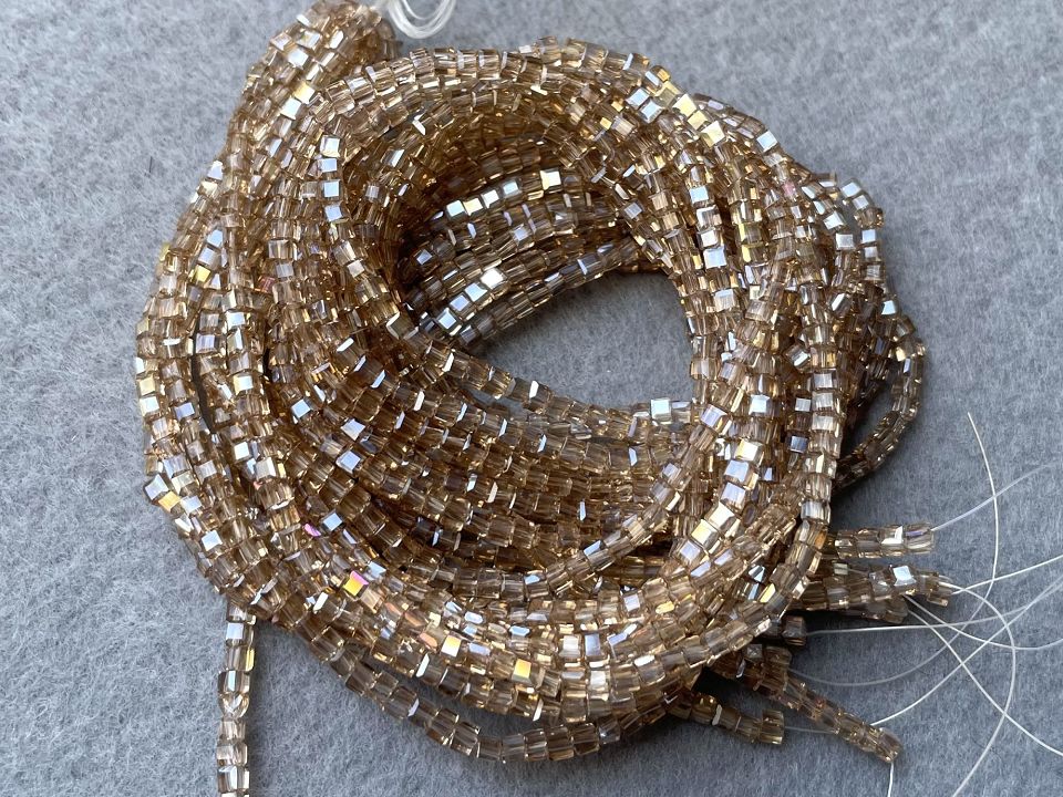 Кришталеві намистини, грановані. Розмір: 2мм, отвір: 0,8мм. Форма кубик. У нитці: 185+-5шт. Ціна за 1 нитку.