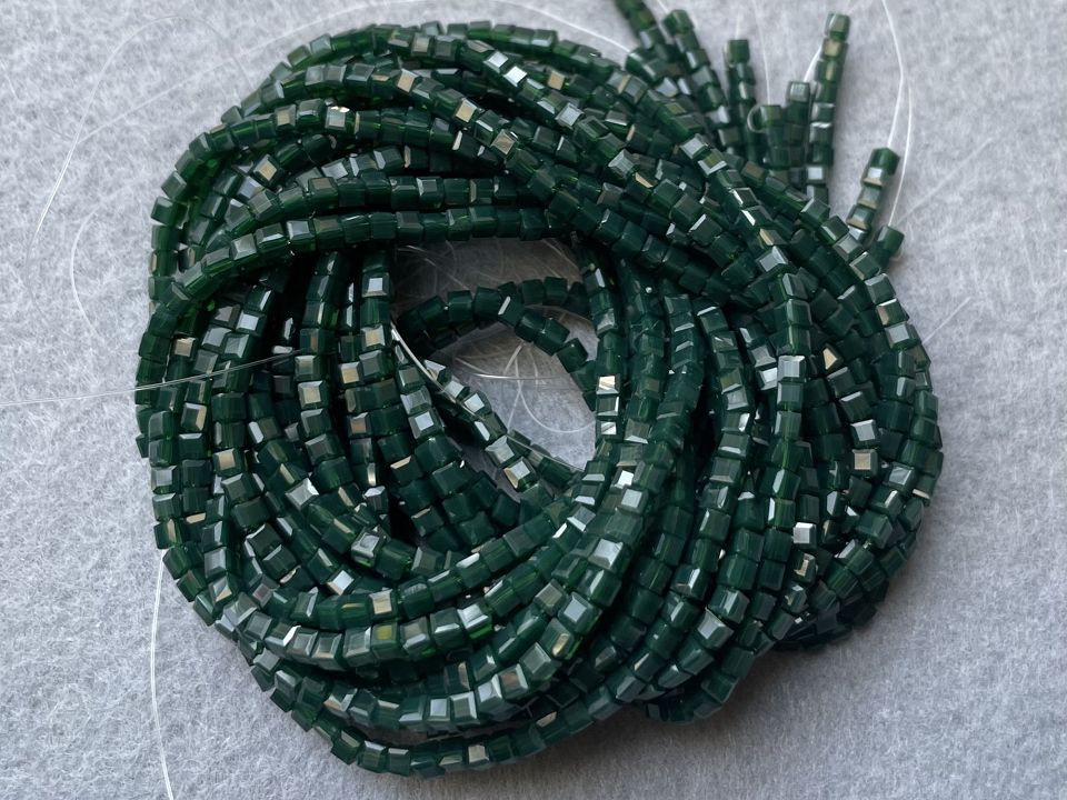 Кришталеві намистини, грановані. Розмір: 2мм, отвір: 0,8мм. Форма кубик. У нитці: 185+-5шт. Ціна за 1 нитку.