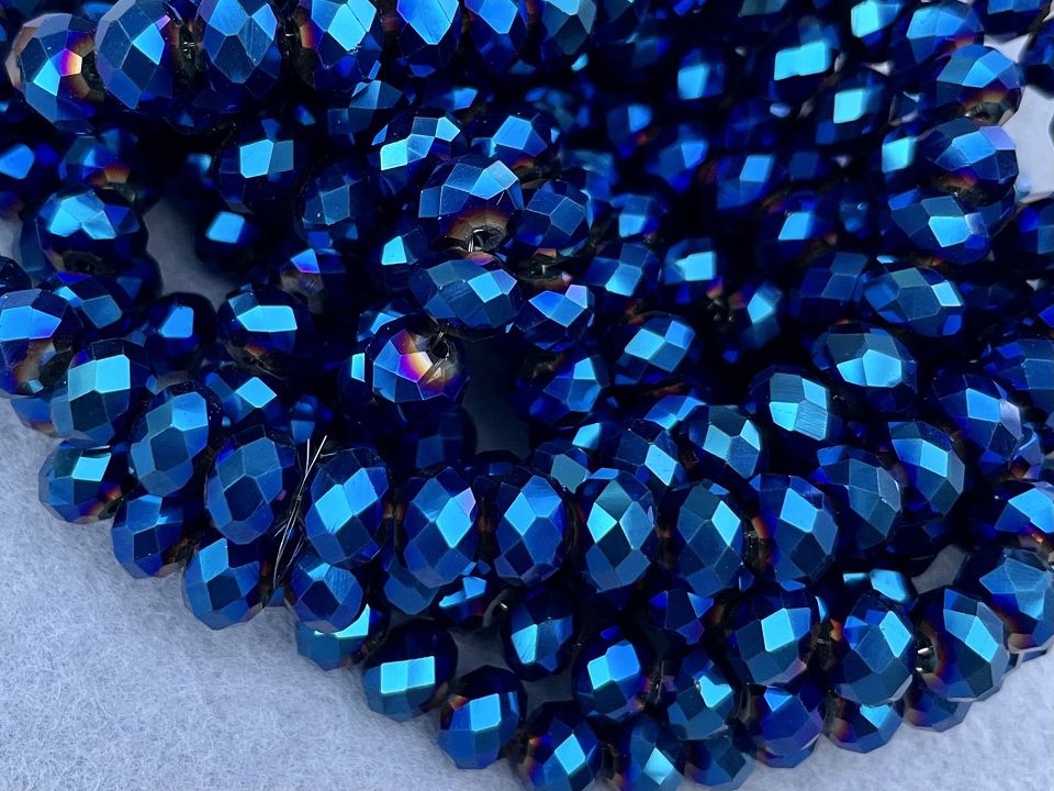 Кришталеві намистини, грановані. Розмір: 8*7мм, отвір: 1,5мм. Форма: рондель, сфера (еліпсоїд). У нитці: 70+-3шт. Ціна за 1 нитку.