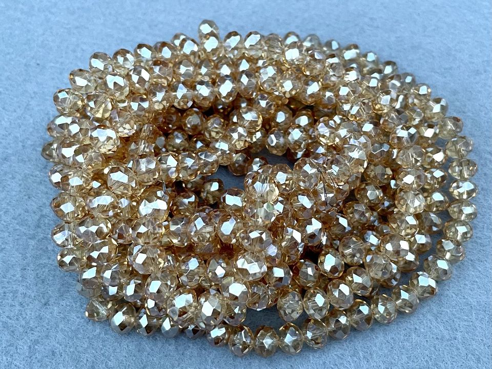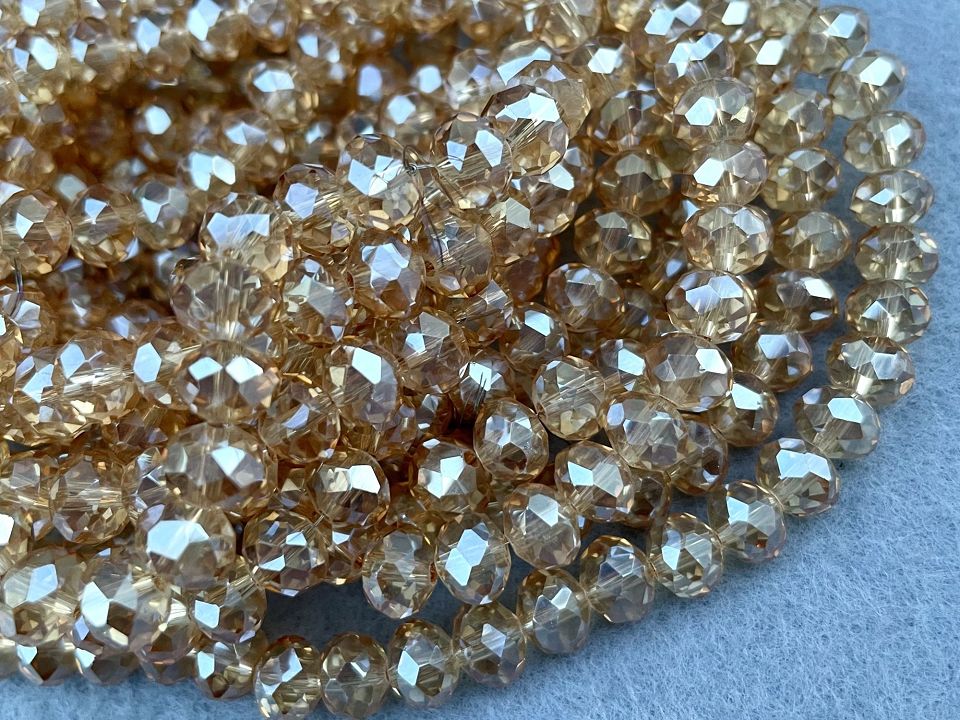 Кришталеві намистини, грановані. Розмір: 8*7мм, отвір: 1,5мм. Форма: рондель, сфера (еліпсоїд). У нитці: 70+-3шт. Ціна за 1 нитку.