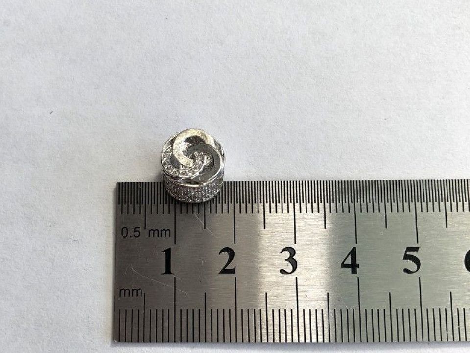 Бусина для пандори або товстого шнура.Інкрустіровани Кубічним цирконієм (також називаються намистинами з фіанітів) покриття родій Колір-сталь, ціна за 1 шт