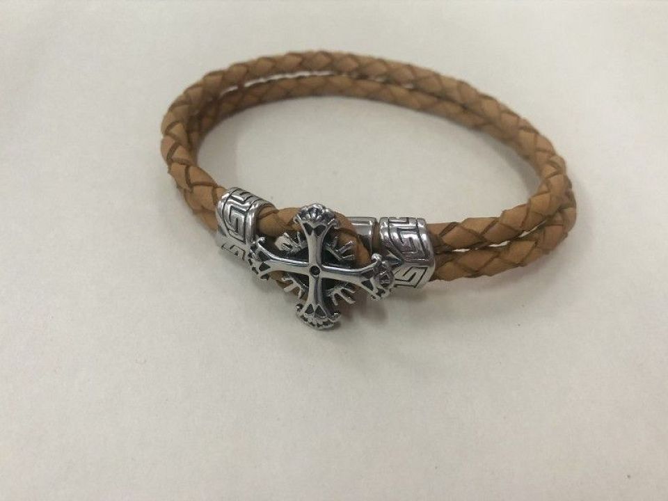 Плетений шкіряний браслет зі сталевою застібкою і декоративними фрагментами. Розмір в наявності: 21см