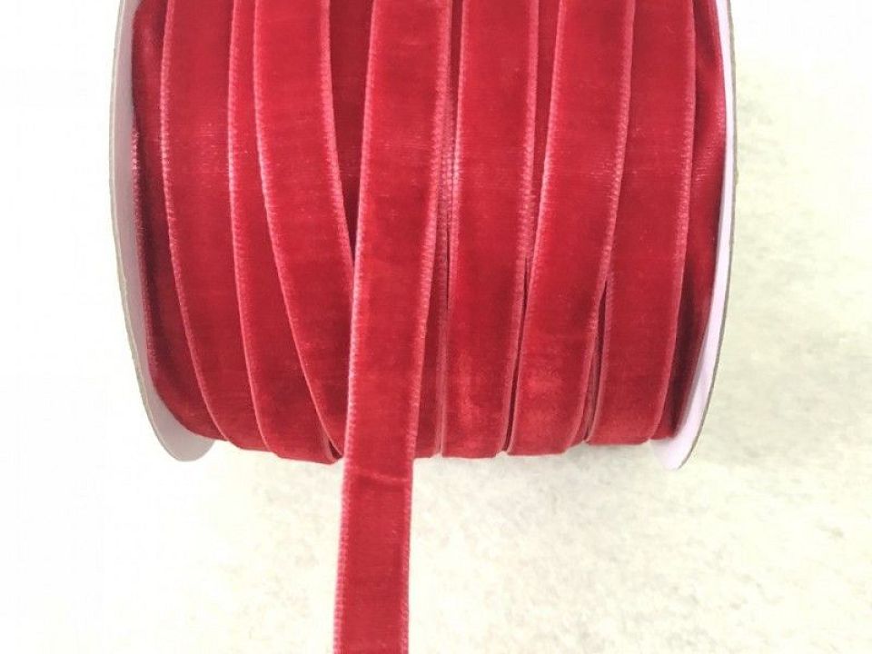 Стрічка велюровая.Діаметр -1 см, бобіна- (50 ярдів) ~ 46 метрів Колір - червоний