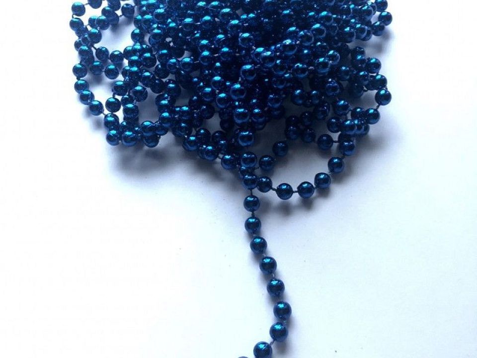 Намистини пластикові фіксовані на нитці. Діаметр-6мм; Упаковка-5метров Колір синій