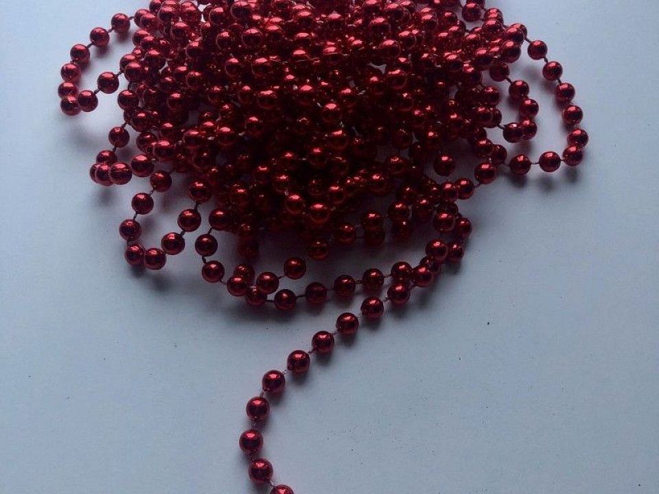 Намистини пластикові фіксовані на нитці. Діаметр-6мм; Упаковка-5метров Колір червоний