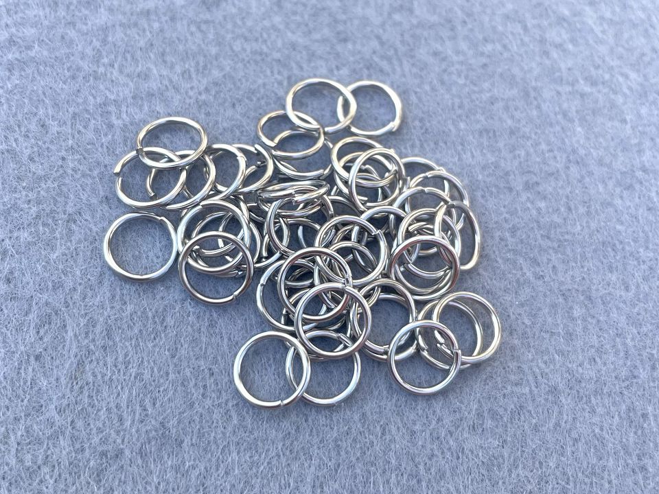 Сполучні кільця для біжутерії з нержавіючої сталі. Зовнішній діаметр – 9мм. Товщина металу приблизно 1мм. Ціна за – 50 штук.