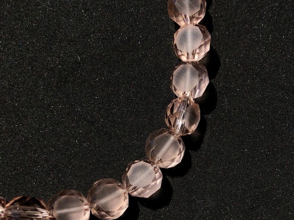 Кришталеві намистини круглі з плоскими сторонами. параметри: Висота 8мм Ширина 8мм Товщина-6мм Кількість на нитці-70 шт. Колір-персиковий