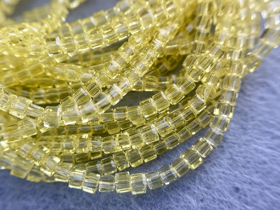 Кришталеві намистини, грановані. Розмір: 2мм, отвір: 0,8мм. Форма кубик. У нитці: 190+-5шт. Ціна за 1 нитку.
