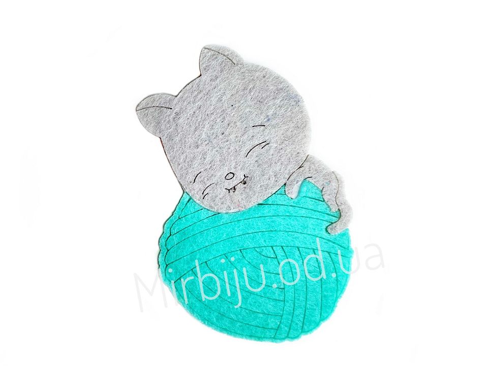 Аплікація з фетру <Кот з клубком> Арт: 19078