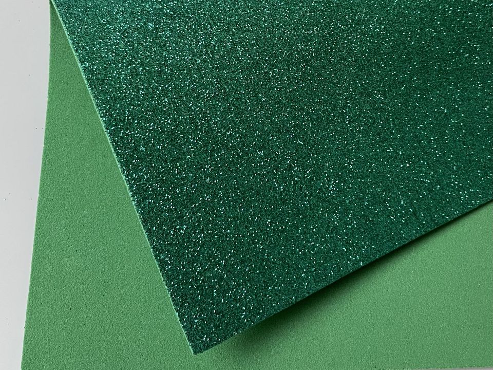 ФОМ глітерний товщина 2 мм без клейової основи, розмір аркуша 20 * 30см.Цена за -упаковка 10лістов.Цвет-зелений (13) Перед роботою з Фомом рекомендують побризкати лаком для волосся, для гарної фіксації блискіток.