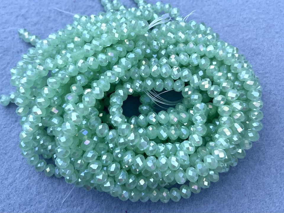 Кришталеві намистини, грановані. Розмір: 6*5мм, отвір: 1мм. Форма: рондель, сфера. У нитці: 90+-3шт. Ціна за 1 нитку.