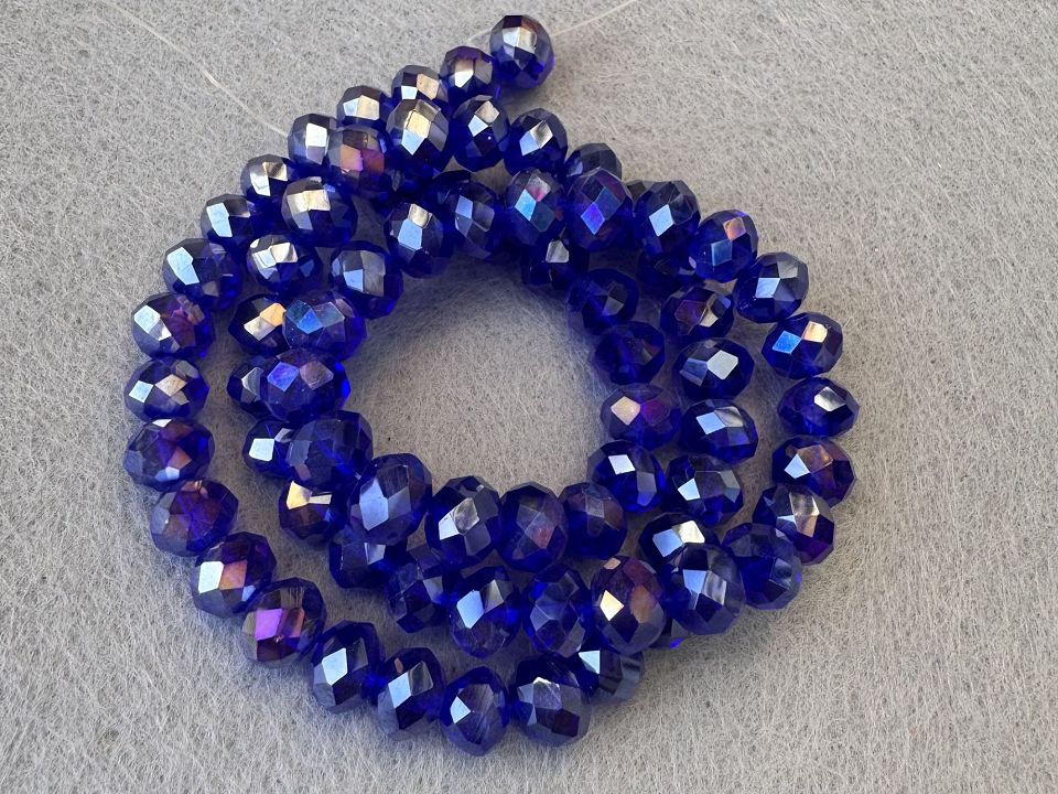 Кришталеві намистини, грановані. Розмір: 10 * 8 мм, отвір: 1,5 мм. Форма: рондель, сфера (еліпсоїд). У нитці: 70+-2шт. Ціна за 1 нитку.