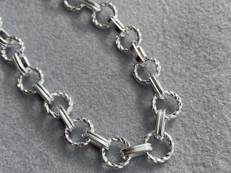 Розмір меншого ланки 1.5 * 1.2см. Велике овальне ланка-2.1 * 1.7см. Колір-срібло. Ланцюг велика використовують як декоративний елемент (в залежності від розміру ланцюга) при пошитті: сумок, рюкзаків, косметичок, брелків, взуття, одягу, елемент декору інтер'єру, при створенні біжутерії та інше.
