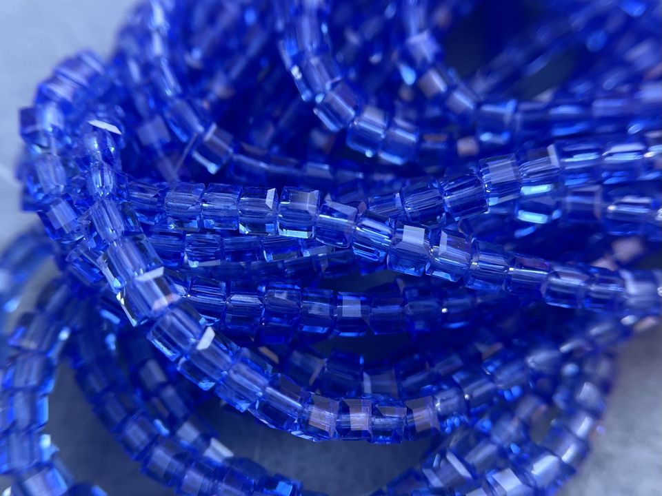 Кришталеві намистини, грановані. Розмір: 2мм, отвір: 0,8мм. Форма кубик. У нитці: 190+-5шт. Ціна за 1 нитку.