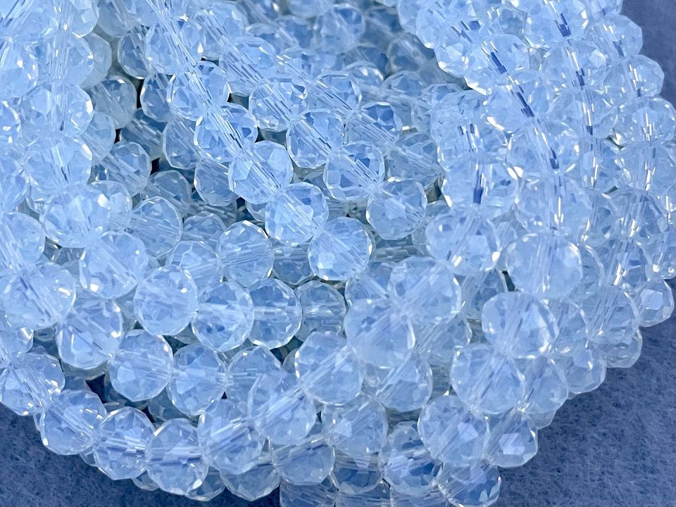 Кришталеві намистини, грановані. Розмір: 8*7мм, отвір: 1,5мм. Форма: рондель, сфера (еліпсоїд). У нитці: 70+-3шт. Ціна за 1 нитку.