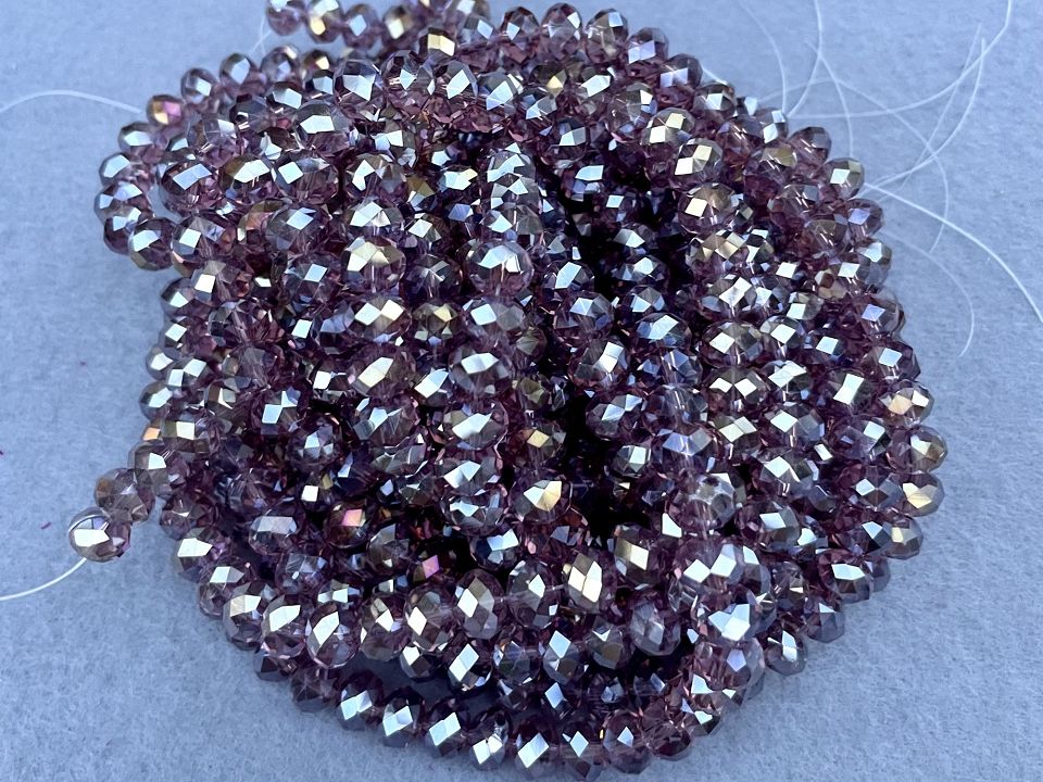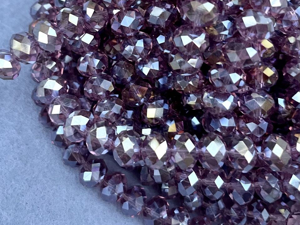Кришталеві намистини, грановані. Розмір: 8*7мм, отвір: 1,5мм. Форма: рондель, сфера (еліпсоїд). У нитці: 70+-3шт. Ціна за 1 нитку.